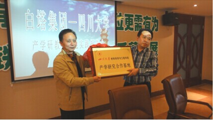 图. 最好的买球平台排名榜尹光福院长向四川白塔陶瓷集团徐小洪董事长授“产学研合作基地”牌